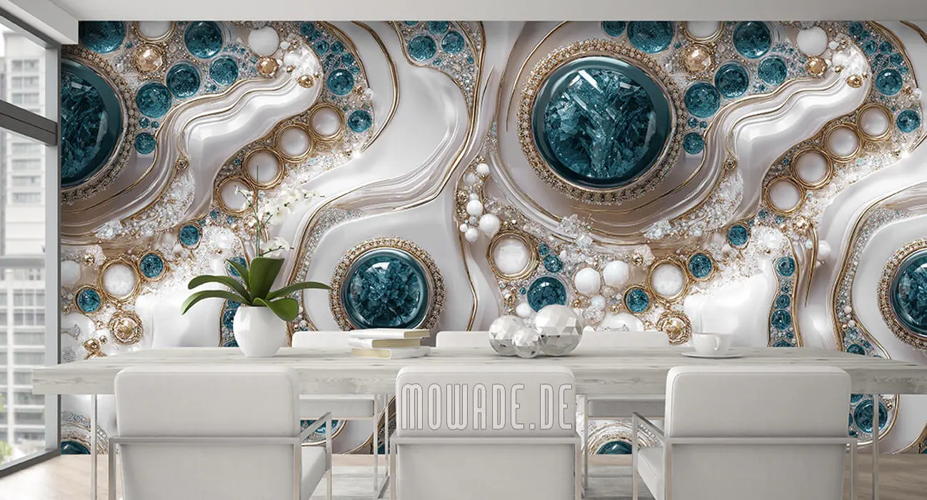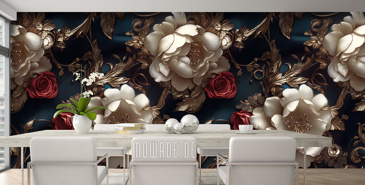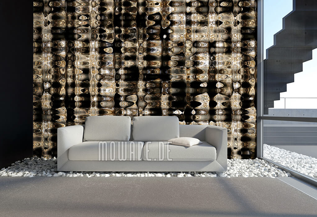 Bei diesen Tapeten handelt es sich um matte bzw. semimatte Vliestapeten, die im Digitaldruckverfahren individuell bedruckt werden. Es sind keine Metalltapeten. Glänzendes Chrom oder glänzendes Gold kann mit diesem Verfahren nicht gedruckt werden. Ein eventueller optischer Eindruck von glänzendem Metall entsteht nur durch das Motiv und nicht durch das hochwertige Vliesmaterial.